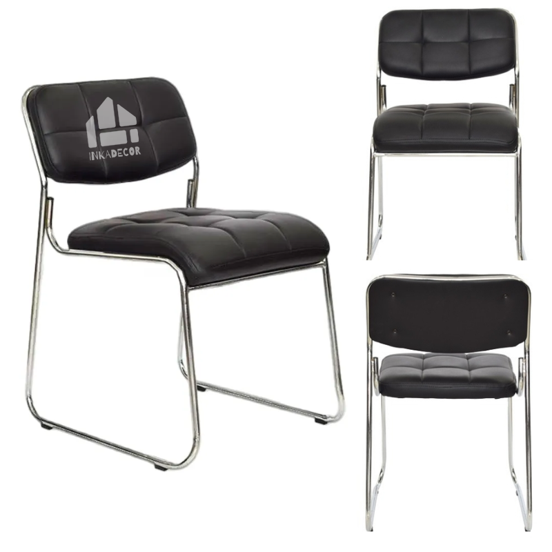 Silla de visita fija viva crom, asiento y espaldar tapizados en cuerina, espuma inyectada, estructura de metal cromada tipo trineo con antideslizantes.