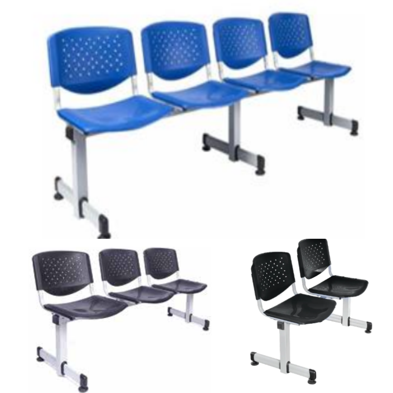Esta banqueta tapizada en cuerina de color negro con estructura de metal cromada, ofrece comodidad y resistencia, combinando diseño ergonómico y materiales duraderos. Perfecta para proyectos de amueblamiento de espacios institucionales. Disponibles en 2, 3 y 4 asientos.
