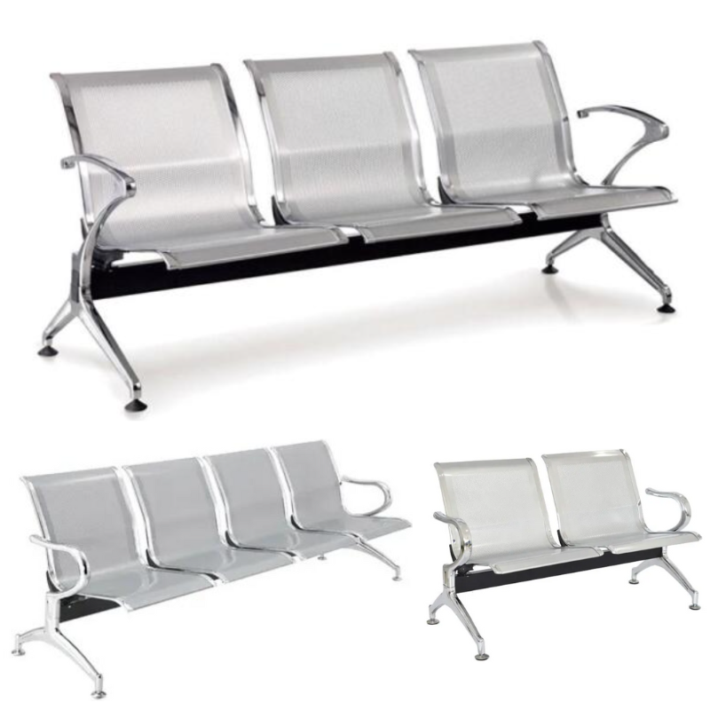 Estructura de metal cromado, espaldar y asientos de metal, disponibles en: 2, 3 y 4 asientos