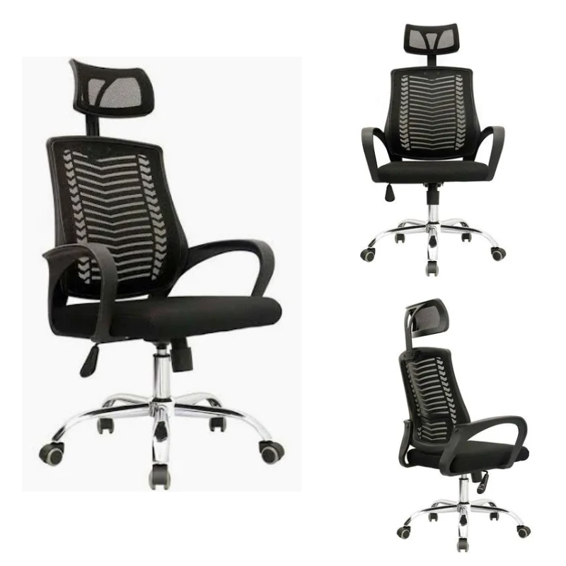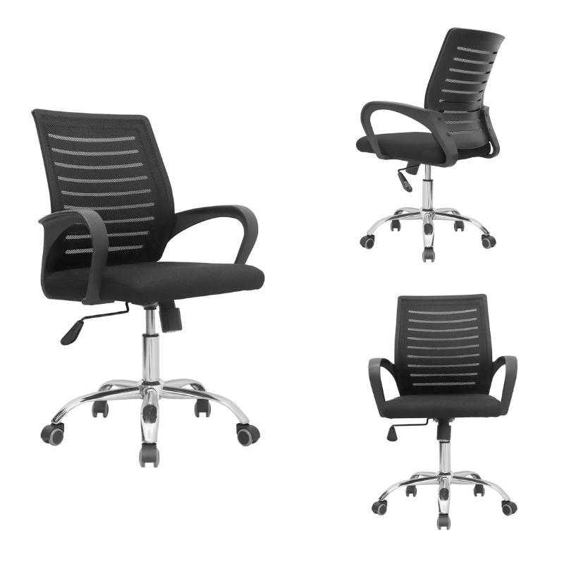 Respaldo de malla transpirable para mayor frescura, asiento acolchado y cómodo, altura regulable con sistema de palanca, base giratoria de metal cromada con ruedas resistentes, sistema basculante, diseño moderno y profesional. Ideal para oficinas, escritorios en casa o espacios de estudio